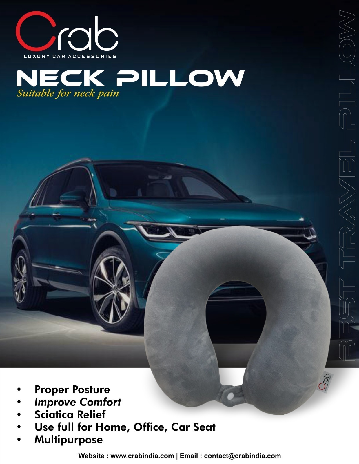Improper neck support during travel or sleep leads to muscle strain, reduced blood flow, and joint stiffness. The Luxury Memory Foam Neck Pillow addresses these issues through: